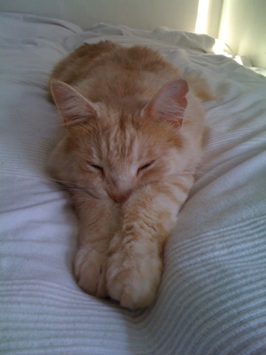 Við Ósk erum bæði miklar kisumanneskjur og söknum þess að eiga kisu. Ef við myndum fá okkur kisu hér úti myndi kosta um 200 þúsund að flytja hana heim, og ekki myndum við vilja skilja hana eftir. Því auglýstum við á nokkrum vefsíðum hér í Danaveldi eftir kisu til að passa í nokkra mánuði. Nokkrum dögum síðar fengum við svar! Kisueiganda vantaði einhvern til að passa kisuna hennar þar til í mars því þá flytur hún í húsnæði þar sem hún getur haft kisuna. Þannig að eftir eina viku fáum við til okkar kisu sem verður hjá okkur þar til í mars! :)
